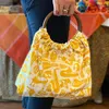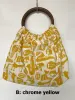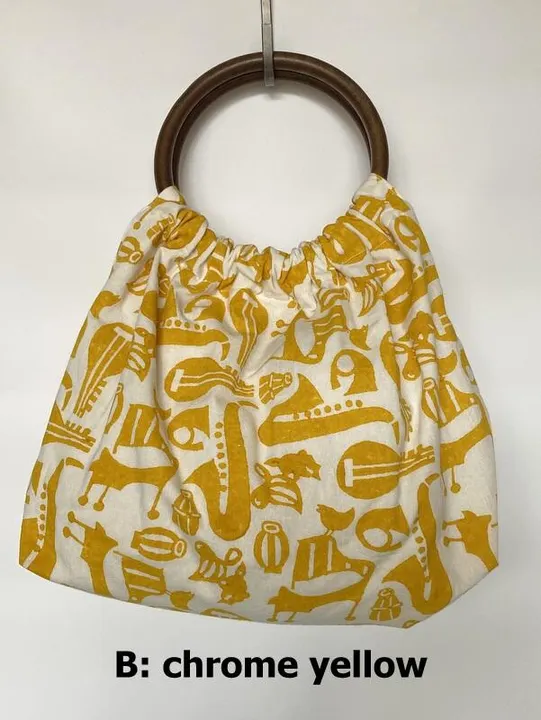 ウッドブロックプリント生地で作ったウッドハンドルの手提げバッグ Chrome Yellow