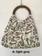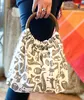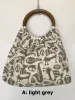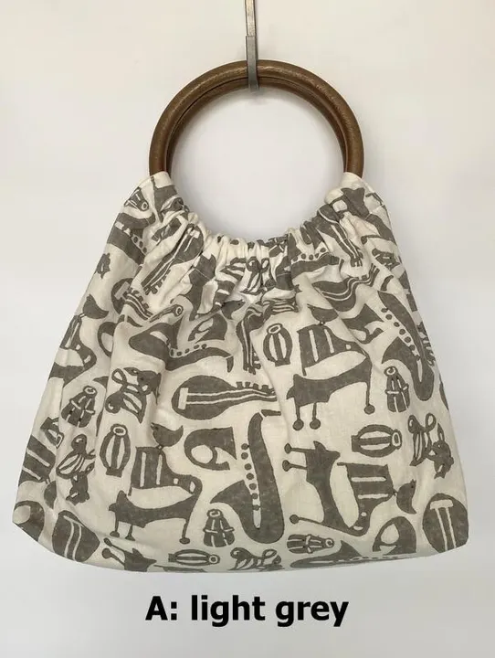 ウッドブロックプリント生地で作ったウッドハンドルの手提げバッグ Light Grey