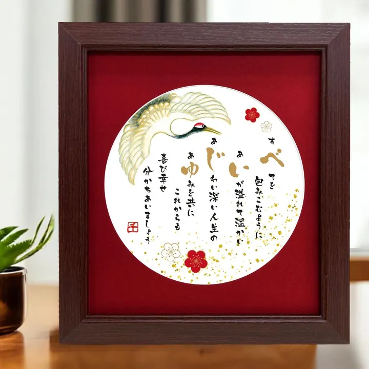 米寿 八十八歳 節目のお祝いに 想いを伝える感謝の贈り物 お父さん お母さん おじいちゃん、おばあちゃん 大切なあの人へ 「ありがとう」って、いつもは言えないけれど 感謝の気持ちを伝えたい おめでとう!長生きしてね!ずっと仲良く幸せに! そんな想いにピッタリな心温まる メッセージポエムのプレゼント 梅は生命力の強さから病気を退ける花と言われています おめでたい鶴のイラストとともに、お祝いの気持ちをより一層伝えてくれます 【商品情報】 作品はプリント品です(直筆ではございません) 額:ガラス&木製 スタンド:木製 白い化粧箱入り 壁掛け、立てかけも可能 【サイズ】 額の外形:30×31×1cm 内径:24×27cm 【色紙サイズ額色】 茶色 ※当商品は米寿を迎えられる方に贈られるギフトです。 ※お届け商品には金額などお買い上げに関する伝票はお付けしていません。 ※ガラス製ですのでお取り扱いはご注意ください。 ※商品画像については、モニターによって色味が若干異なります事ご了承ください。 【贈る方】 自分 両親 お母さん お父さん おじいちゃん おばあちゃん 祖父 祖母 友人 パートナー 父 母 旦那 夫 妻 嫁 先輩 同僚 上司 友達 家族 男性 女性 【用途】 長寿祝い 米寿 贈り物 感謝 ギフト 周年記念 サプライズ 応援 お祝い 記念日 誕生日