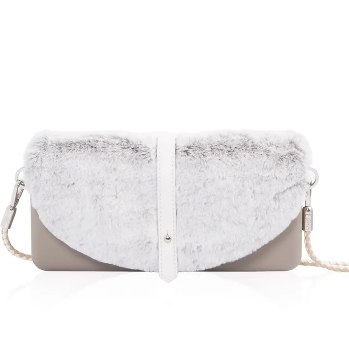 ◆都会的なグレーのフレームに、リッチ感漂うファーを合わせたミニショルダーバッグ。ベルト付きなので凛とした美しさがあり、クラッチバッグとしても使用可能。ゴージャスになり過ぎず、清楚な印象を与えてくれます。<br>クラッチバッグとしても使えるミニショルダーバッグです。■構成部品 Frame:Sage Grey Body Straps:Scubid - Champagne Ice  Camilla In-Bag:Snow Fur