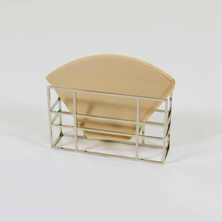 高級感あふれるゴールドとシルバーのカラーとエレガントでモダンなデザインが特徴のコーヒーフィルターケースです。 目を引くフレームデザインは、シンプルながらホテルライクな上質な空間を演出し、インテリアとしても十分存在感を発揮します。 置き場に困りがちなコーヒーフィルターも1度のリフィル作業で約60枚収納可能なので、手間要らずにおしゃれに収納することができます。 合わせやすいシルバーとゴールドの2色展開なので、飾るだけでも洗練された雰囲気を演出でき、自宅、レストラン、カフェ、ホテルなど様々なシーンやインテリアにマッチします。 コーヒーフィルターに限らず、ハガキや写真立てとして、またメモケースとしても使用でき、アイデア次第で幅広く活躍するアイテムです。