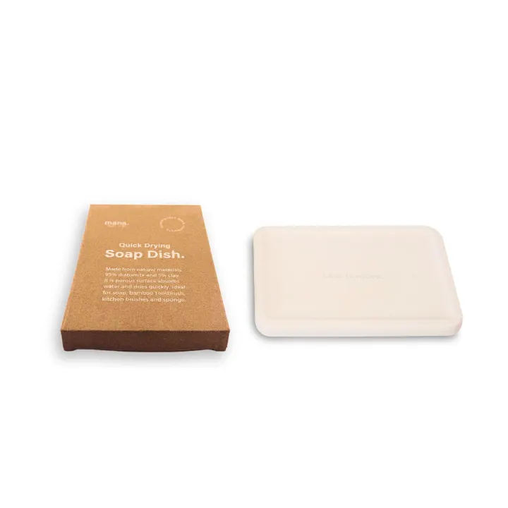 速乾性や衛生面に優れている珪藻土アイテムに、ソープディッシュが仲間入り。石鹸だけでなく、スポンジやキッチンブラシなど、様々な自然素材の製品と相性が合うトレイ。リバーシブルで、「Less is more.」のロゴ入り。 珪藻土(けいそうど)は植物性プランクトン類の化石・珪藻殻の堆積物からなる自然素材です。多気孔質な素材であり、無数の小さな穴が水分を瞬時に吸収します。 以下の効果が期待できます。 ・吸水性 ・速乾性 ・カビの繁殖を防ぐ ・消臭効果 アスベスト検査(定性分析JIS)済。結果:無