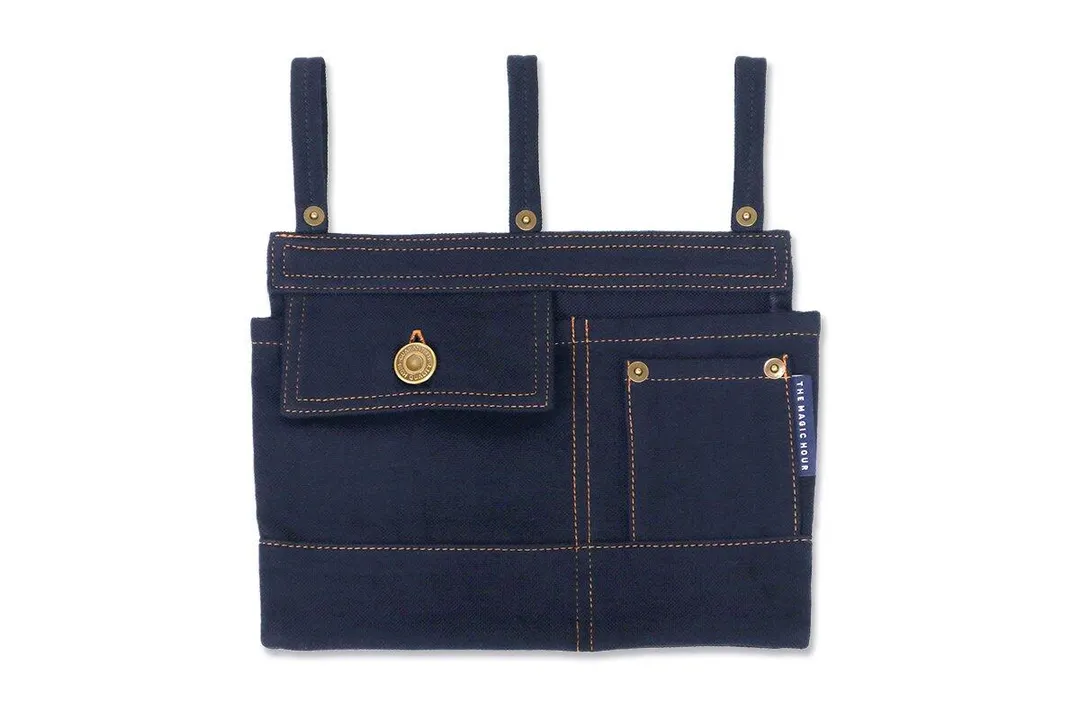 ベルトに通して装着する小型のツールバッグです。 3つのポケットで構成されたシンプル設計で、常に身につけておきたいツールの収納、持ち運びに便利な逸品。 6.8インチの大画面スマートフォンや、厚みのある手帳型のケースに入ったスマートフォンも収納可能です。 アウトドアシーンでのハードユースに対応しており、独自に開発した軽さと頑丈さを併せ持ったデニム生地をベースに、 太番手の糸で際立たせたステッチ、タックボタン、リベットでジーンズライクなデザインに仕上げています。 カラビナを併用すれば、ベルト以外のコンテナバッグ等にもカスタムパーツとして装着が可能です。