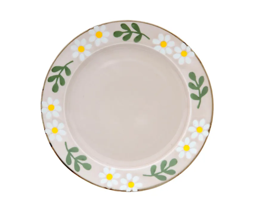 フラワーモチーフの中でも特に人気の高い、ミモザとカモミールをやさしいタッチで描きました。 テーブルに春の光が差したような、明るいトーンのフレッシュな雰囲気を纏っています。 朝食やティータイム、ちょっとしたおもてなしにも◎ 使っていると心まであたたかくなるような、とっておきテーブルウェアシリーズです。 朝食プレートにちょうどよいサイズ感。 縁ギリギリまでいっぱいに描かれたお花が、ハッピーな一日のスタートに彩を添えます。 午後はお気に入りパティスリーのケーキを載せて、お揃いのカップとポットで幸せなティータイムを過ごしましょう。 ギフトセットにもどうぞ。