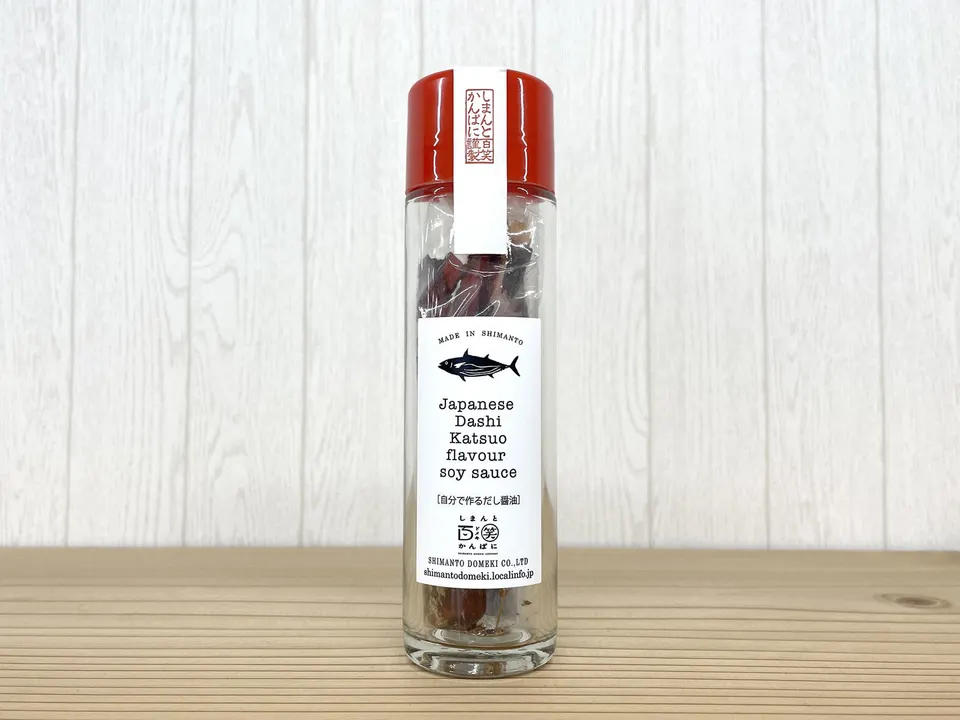 じぶんでつくる「だし醤油」日本産 極上の旨いかつお節が入ったこのビンに、いつもの醤油を入れるだけでオリジナルだし醤油が出来ます!香りがよく上品な味わいです。醤油を入れ、1日ほどでコクとうま味のだし醤油ができあがります。完全無添加で自然本来のだしを味わっていただけます。鰹本節を1mmの厚削りにしていますので、濃厚で香りもよくコクのある濃いだしがでます。 卵かけご飯、冷奴、うどんやそばのだしに、おひたし、茶わん蒸し、炒飯、野菜炒めなどアイデア次第でご利用いただけます。 少し贅沢な気分にしてくれる。蓋を開けて醤油を注ぐ。たったこれだけで、まろやかなだし醤油に生まれ変わります。醤油の好みは、生まれ育った地域などで、人それぞれ。『我家のだし』なら、お好みのお醤油で、お好みのだし醤油が作れます。だしの素からは、じっくり時間をかけて旨味が出ます。一度で出尽くしてしまうものではありませんので、醤油が半分程に減ってきたら継ぎ足して10回ほど使えます。グルメな方にオススメの醤油の素。刺身・炒飯・煮物などお料理に。また、卵かけご飯などに。かけ醤油・つけ醤油・調味料として、いろいろお使いいただけます。 多様な使い方 だし醤油: お好みの醤油を注ぐだけで、簡単に本格だし醤油が完成します。 だし酢: お酢を注ぐと、だし酢としてもお使いいただけます。 万能ポン酢: 醤油、お酢、柚子果汁を2:1:1の割合で混ぜれば、手軽にポン酢も作れます。 ぜひこの機会に、ご家庭で手軽に本格的な味わいを体験し、料理の幅を広げてみませんか?