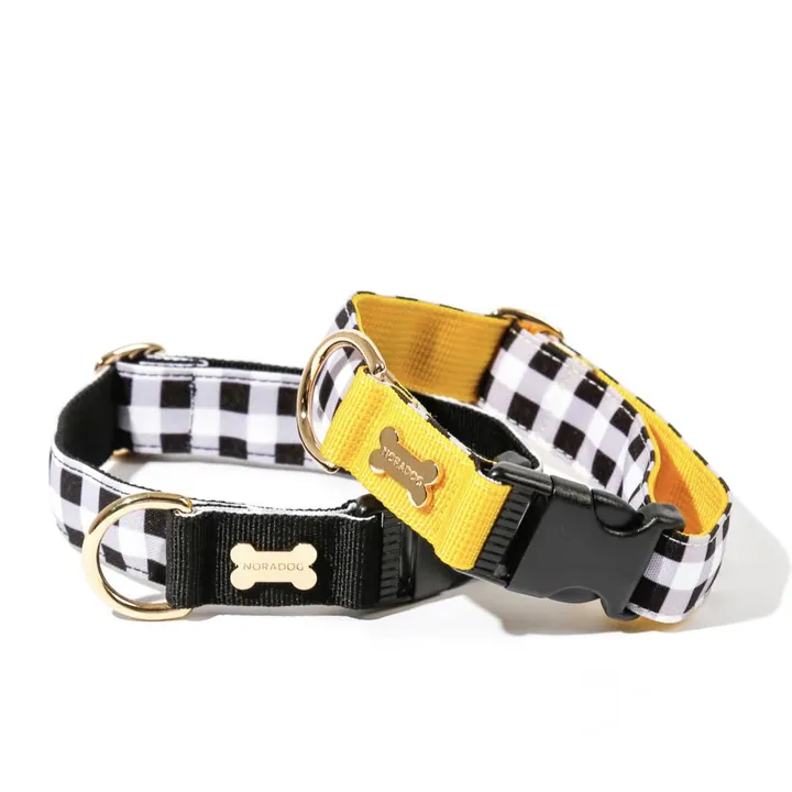 Barbie Check バービー チェック カラー(首輪) LW(ワイド)〜XLサイズ ブラックorイエロー 日本遂に上陸!! ポップで可愛いNORADOG !! オシャレなバービーチェック模様のデザイン。 防水コーティング布を使用し、毛も付かず汚染や湿気に強く「独自設計したキャラクター」で、ユニークさを強調しました。 首輪一つでご愛犬たちの可愛さをもっと強調できます。 長さ調節が可能で体型に合わせて調節して使いやすいです。 柔らかい裏地ウェビングを使って軽くて着心地がいいです。 すべてのワンちゃんによく似合う色を組み合わせて、ご愛犬が着用した時にポイントになる製品です。 より高い強度と伸縮性を保つために黒いバックルを使用し、ナイロンウェビングで二重層に縫い付けられています。小型犬から大型犬まで幅広くご使用いただけます。 ※実物のバックルは透明色から黒に変更されてます。 ※首輪以外は別売りです 傷や汚れに強く、快適さのための柔らかいウェビングの裏地。 防水コーティング450D ポリエステル製 〜サイズガイド〜 L/Wサイズ 11kg~25kg 首回り 34cm~55cm 幅 38mm (ワイド) XLサイズ 26kg~ 首回り 52cm~80cm 幅 25mm NORADOG 3点セット(ハーネスorカラー、リード、マナーポーチ)で使うともっと素敵です♡ -洗濯情報- ・水温30°Cまで。必ず手洗いし、洗剤を使用し冷水で洗ってください。 ・水に触れると裏地がよじれることがありますが、乾くと縮みます。 ・熱風乾燥や熱湯は絶対使用しないでください。 ・ねじったり、水を絞ったりすると生地を傷める恐れがあります。 ・洗濯後は製品を開いて陰干ししてください。 注:洗い方を間違えた場合の交換・返品はお受けできません。 **注文と配送について** ・在庫のある商品は配送期間注文日から2〜3営業日、在庫のない物は韓国からの取り寄せになり2週間~1ヶ月前後要します。 ・大きさ地域によって追加運賃が発することがあります。 ・連休や配送状況によって(輸入、製作期間、入荷遅延など)遅延することがあります。 **交換及び返品** -商品受領日から3日以内に受付、7日以内に当社へご返送ください。 -お客様のご都合による返送の場合、配送費はお客様のご負担になります。 -製品誤配送、初期不良品の場合、弊社の不手際の場合、送料は当社が負担します。 -商品到着後に破損した製品は交換及び返品できかねます。 -製品に使用痕跡(臭い配込み)がある場合、交換及び返品できかねます。 ☆☆☆☆☆☆☆☆☆☆☆ Designed by NORADOG Made in Korea ☆☆☆☆☆☆☆☆☆☆☆
