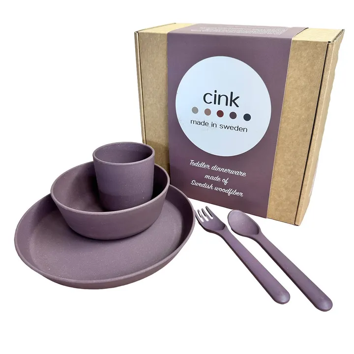 The perfect gift for the first birthday! 自分の手で食べ始めたお子さまにぴったりな、 マグ、ボウル、プレート、スプーン、フォークの5点のセットです。 ボックス入りでギフトにもおすすめです。 小さなお子さまから、ゆったりと仲間と食事の時間を過ごす大人まで、多くの世代の方にお使いいただけます。 ☑ <Made in SWEDEN> 中国から、スウェーデンでの製造へ切り替わりました。 自国で製造することにより、商品輸送時に排出されるCO2を削減できます。 紙帯や箱のパッケージもスウェーデン製のものを使用しています。 ☑ <素材のアップデート> 木繊維とバイオベースのPP(ポリプロピレン)からなり、リサイクル可能です。  木繊維はスウェーデンの工場から65km圏内から調達された、FSC®またはPEFC認証を受けた間伐材等を使用しています。 ☑ <軽量化> 素材の変更により、従来品より軽くなりました! また耐久性も高まったことから、インドアだけでなく、アウトドアでも活躍します◎ ――――――――――――――――― こんな方にオススメ! ☑エコやサステナブルな生活をこれから始めたい方 →環境に配慮された素材であり、シンプルなデザインなのですぐに生活に取り入れられます◎ ☑環境問題に関心の高い方 →リサイクル可能な素材を使用。自国生産することでCO2削減に貢献しています。 ☑デザイン性も大切にしたい方 →シンプルなスカンジナビアデザインと5つのニュアンスカラーによる、スタイリッシュなデザイン。 ☑大切な方へのプレゼントに ――――――――――――――――― □ブランド説明:cink □ スウェーデン発 スタイリッシュで環境にも優しいテーブルウェア cink(サンク)は母であるElenaが、ちいさな家族=ベビー・キッズに向けて立ち上げたテーブルウェアブランド。あらゆる家族と年齢層に飽きなく使い続けてもらえるよう、スタイリッシュで機能的なデザインに、シンプルで柔らかな5つのニュアンスカラーを製品へ落とし込みました。社名はフランス語の「5=cinq」が由来。 ブランドの核となるのは、落ち着いたカラーリングのシンプルなスカンジナビアデザインと、環境に配慮された素材です。 私たちと一緒に、より持続可能な未来に一歩近づきませんか。