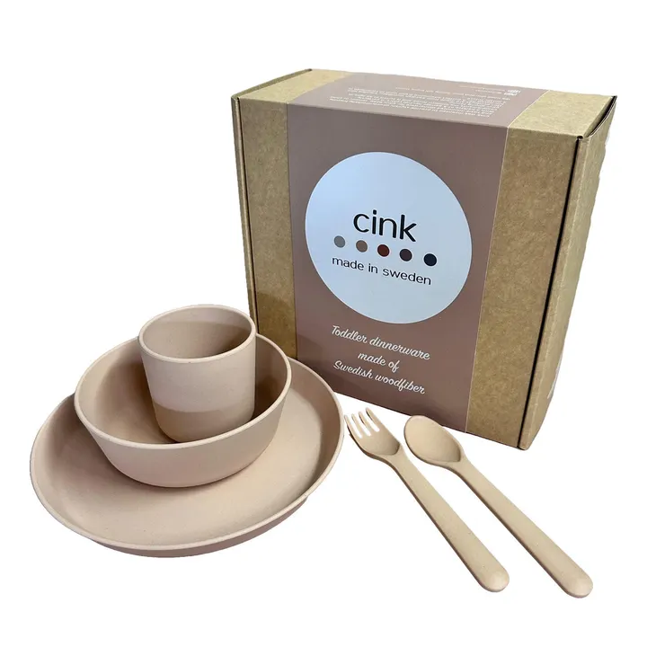 The perfect gift for the first birthday! 自分の手で食べ始めたお子さまにぴったりな、 マグ、ボウル、プレート、スプーン、フォークの5点のセットです。 ボックス入りでギフトにもおすすめです。 小さなお子さまから、ゆったりと仲間と食事の時間を過ごす大人まで、多くの世代の方にお使いいただけます。 ☑ <Made in SWEDEN> 中国から、スウェーデンでの製造へ切り替わりました。 自国で製造することにより、商品輸送時に排出されるCO2を削減できます。 紙帯や箱のパッケージもスウェーデン製のものを使用しています。 ☑ <素材のアップデート> 木繊維とバイオベースのPP(ポリプロピレン)からなり、リサイクル可能です。  木繊維はスウェーデンの工場から65km圏内から調達された、FSC®またはPEFC認証を受けた間伐材等を使用しています。 ☑ <軽量化> 素材の変更により、従来品より軽くなりました! また耐久性も高まったことから、インドアだけでなく、アウトドアでも活躍します◎ ――――――――――――――――― こんな方にオススメ! ☑エコやサステナブルな生活をこれから始めたい方 →環境に配慮された素材であり、シンプルなデザインなのですぐに生活に取り入れられます◎ ☑環境問題に関心の高い方 →リサイクル可能な素材を使用。自国生産することでCO2削減に貢献しています。 ☑デザイン性も大切にしたい方 →シンプルなスカンジナビアデザインと5つのニュアンスカラーによる、スタイリッシュなデザイン。 ☑大切な方へのプレゼントに ――――――――――――――――― □ブランド説明:cink □ スウェーデン発 スタイリッシュで環境にも優しいテーブルウェア cink(サンク)は母であるElenaが、ちいさな家族=ベビー・キッズに向けて立ち上げたテーブルウェアブランド。あらゆる家族と年齢層に飽きなく使い続けてもらえるよう、スタイリッシュで機能的なデザインに、シンプルで柔らかな5つのニュアンスカラーを製品へ落とし込みました。社名はフランス語の「5=cinq」が由来。 ブランドの核となるのは、落ち着いたカラーリングのシンプルなスカンジナビアデザインと、環境に配慮された素材です。 私たちと一緒に、より持続可能な未来に一歩近づきませんか。