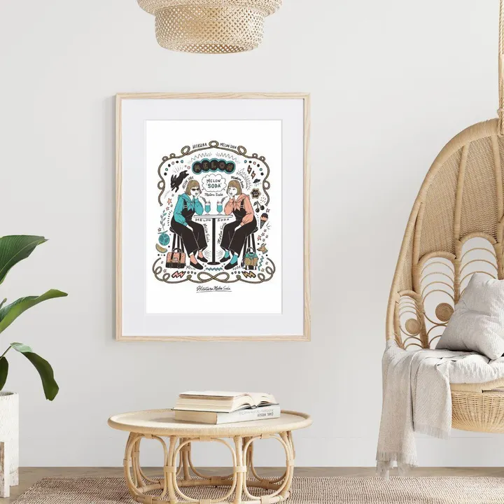 アーティスト -PROFILE- Satomi Kawai(サトミ カワイ) イラストレーター&グラフィックデザイナー 女子美術大学デザイン学科卒業 デザイン会社での勤務経て2015年フリーランスに。 ちょっとシュールで小洒落たイラストを描いています。 【作品について】 エモい世界観やレトロ感が人気! 昭和のメロンソーダを愛する気持ちを表現。 作品名:melonsoda 手法:イラスト、デジタル ペーパー:高品質半光沢紙 マットカラー:白 マット*:DXホワイト芯 100%バージンパルプ/PH7・中性紙(2mm厚) ※全てのアートにマットがつきます フレームカラー:黒、白、無垢(3種類から選択) ※マット付のため通常とはフレームサイズが異なる規格となります。 【マット*とは?】 アートポスターの周りに挟んだ厚紙の事。 マットを使わない時に比べ余白により広がりが生まれ、作品の新たな一面を引き出せ作品の見栄えがグッと良くなります。また、額縁のガラス面と作品が直接触れたままにしておくと、くっついて作品を傷つけることがあります。マットを使用することでガラスと作品の間に空間ができ、作品を保護することができます。ブランドコンセプトにより全てのアートにマットがつきます。 ー ファッションのようにアートを ー 私達が掲げるコンセプトです! 毎日着替えるファッションの様に、アートも気軽に飾り変えて欲しい... 一旦飾り終えたアートにも光を当ててほしい... ポスター単体、またはリピートで中身だけのポスターを購入された方に"専用のハンガー"をセットでお届け。 「今までに無い!新しいアートの飾り方を提案」 飾る事がなくなった前のアートをハンガーにかけて洋服と一緒にかけてもらう。 その日の気分や、モチベーションですぐに取り換えられる様に。 もちろん、魅せる収納としても今までにないおすすめの飾り方です。