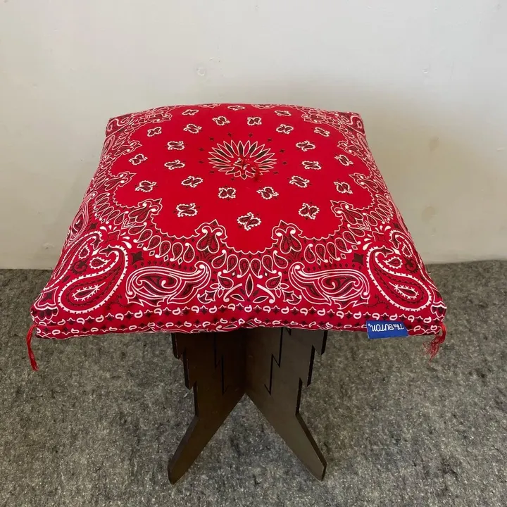 『TheBUTON』は、山形の老舗布団屋で培った技術を受け継ぎ、職人が一点ずつ手作りする座布団ブランドです。中綿には贅沢に座布団用の真綿を使用し、カバーにはアメリカHAVE A HANK社のバンダナ生地を使うことによりモダンカジュアルになり、和室でも洋室でも場所を選びません。