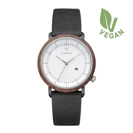 ケース素材 : ウォルナット / ベルト素材 :ヴィーガンレザー(紙素材) / ムーブメント : クオーツ