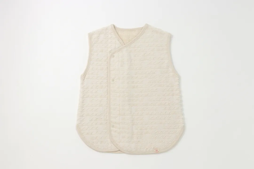 tinymame(タイニーマメ)は、愛媛県今治市のテキスタイルメーカー・ 渡辺パイル発の、ベビー&キッズ向けブランドです。 素材には良質なオーガニックコットンを100%使用。瀬戸内の豊かな自然をモチーフにした完全オリジナルのテキスタイルを自社工場で織っています。 タオルはもちろん、小さな子どものいる毎日に欠かせないアイテムを展開しています。 とっておきのふわふわベスト。長くお使いいただけるゆったりとしたサイズ感で、ベビーのスリーパーやキッズのベストとしておすすめです。 ●swim柄に込めた思い Happiness comes in waves to find you. 幸せは波みたいにきみのところに押し寄せるよ。 ●swim柄のモチーフ 穏やかに子供たちの暮らしを見守ってくれる私たちの暮らす瀬戸内の海。太陽のもと海の表面がゆらゆらときらめく様子をモチーフに。