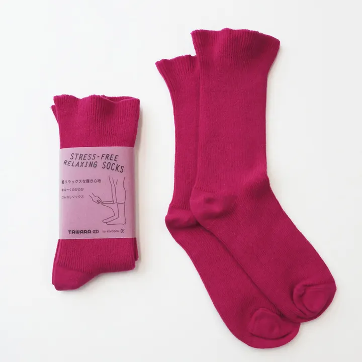 超ゆるのびリブ★ゴムなしクルーソックス【1Pソックス】 【レディース&メンズ】 カラー:26 ピンク サイズ:F(22~27cm)