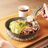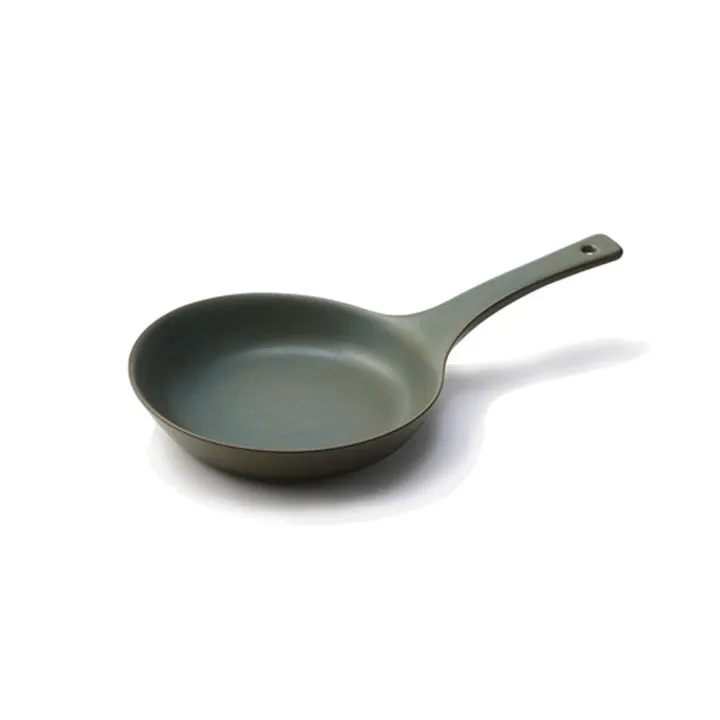 21cmの使い勝手の良いLサイズは、朝昼夜問わず毎日の調理を便利に、そしてお料理を温かいままテーブルへ運んでくれます。 汁気のあるお肉料理やお魚料理にも対応する深さになっています。 Eld(エルド) Eldはスウェーデン語で「炎」を意味します。 耐熱陶器で有名な伊賀焼、万古焼の産地にて研究し、試作を繰り返しながらスキレットに最も適した製造方法と素材を厳選しました。 原型の修正回数が全シリーズの中でももっとも多く、陶器では見たこともないような長い持ち手が特徴です。 原型の精度だけではなく、鋳込みと呼ばれる作りの段階から、1点1点支えが必要な手間のかかるデザインに職人さんがついてきてくれました。素材、デザイン、職人の技術、その混ぜ合わせでまたひとつシリーズが生まれました。