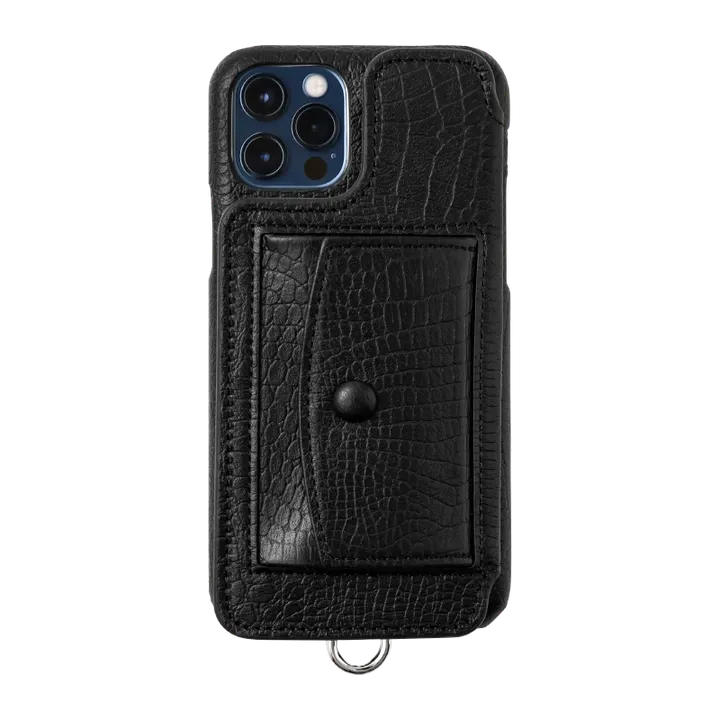 POCHE CROCO (with button) iPhone11Pro クロコ型ブラック