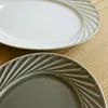 輪舞シリーズは、洗練された食卓を演出するのにおすすめです。プレートのリムにあしらわれたしのぎ模様が特徴的です。この模様は、繊細ながらも存在感があり、艶やかな表面と相まって料理をより一層引き立てます。お色は2色で、お手持ちのうつわにも調和しやすいシンプルなクリームとグレーのご用意がございます。
