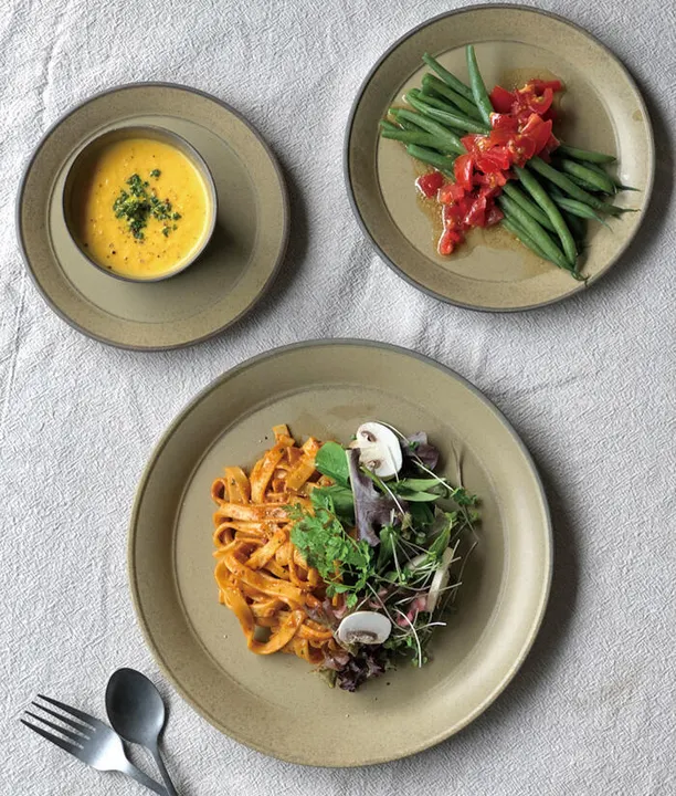 ナチュラルな風合いが魅力的なプルーシリーズです。飾らないシンプルなデザインですが、器に表現されたサビ感が、アンティークっぽさを感じさせます。カラーはきなりとカーキの2色。どちらも使いやすい色合いです。錆模様は一つ一つ違っています。釉薬のかかり具合で色味も多少違います。でもそこがこの器の最大のチャームポイントでもあります。