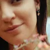 ハチの巣のハニカムモチーフに小さなミツバチがとまった アシメトリーピアス