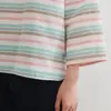 KNGC607-ラメボーダーラウンドネック9分袖ブラウス PINK/L