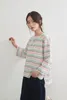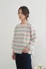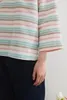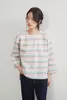 KNGC607-ラメボーダーラウンドネック9分袖ブラウス PINK/M