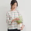 商品特徴 ラメボーダーが爽やかで華やかな印象を与えるラウンドネックブラウス。シンプルなデザインながらも、繊細なラメがさりげない高級感をプラスします。程よいゆとりのシルエットで、リラックス感のある着心地を実現しました。 生地の特徴 綿混の布帛素材を使用し、通気性と肌触りの良さを両立。ナチュラルな風合いでありながら、ラメボーダーによって洗練された印象をプラス。日常使いはもちろん、少し特別なシーンでも着用いただけます。 コーディネート提案 デニムやチノパンと合わせてカジュアルに、またはスカートと組み合わせてフェミニンにも楽しめる万能な一枚。自然な風合いとラメのアクセントがシンプルなスタイリングを引き立てます。オフィスカジュアルにも取り入れやすく、幅広いシーンで活躍するアイテムです。 単位(cm)モデル身長165cm サイズ M 身丈 60/66 バスト 110 肩幅 48 袖丈 42  サイズ L 身丈 60/66 バスト 116 肩幅 49 袖丈 43 素材:ポリエステル80% 綿15% その他5% 中国製 透け感:なし 生地の厚さ:普通 光沢感:なし 裏地:なし 家庭洗濯:可能 【注意点】 ※撮影商品はサンプルの為、実際の仕様と異なる場合がございます。 ※画像の商品は光の照射や角度、お使いのモニター環境により、実物と色味が異なる場合がございます。スタジオ物撮りの画像が実物の色味に一番近くなっております。 ※予約商品の場合、お届け予定はあくまでも目安となります。 生産の都合上、お届け時期がずれる場合がございますので、あらかじめご了承ください。 ※表記サイズは商品の実寸です。 ※布製品の特性上、サイズ表の実寸法は多少の誤差が生じる場合がございますので、予めご了承ください。