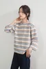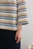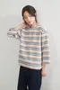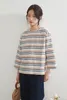 KNGC607-ラメボーダーラウンドネック9分袖ブラウス BLUE/M