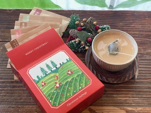 \数量限定/ \出荷 10/22~/ サンタが茶摘みをするかわいいクリスマス限定BOXに、 この季節おすすめのティーバッグを5種、 個包装タイプでご用意いたしました。 お出掛けのお手土産に、クリスマスギフトに、 ぜひご利用くださいませ。 ___________________________ 【セット内容】 ①カカオとほうじ茶のチャイ × 1袋 ②ジンジャーと柑橘の和紅茶 × 1袋 ③茎ほうじ茶× 1袋 ④抹茶入り玄米茶×1袋 ⑤和紅茶×1袋 --------------- ********************************* 【原材料名】ほうじ茶(日本)、有機ココアパウダー、有機ジンジャー、有機シナモン、有機カルダモン、有機ココアパウダー、有機コショウ、茶、紅茶、もち米玄米、抹茶 【内容量】ティーバッグ1包×5杯分 【賞味期限】12ヶ月ほど 【保存方法】直射日光、高温・多湿を避け、保存してください。