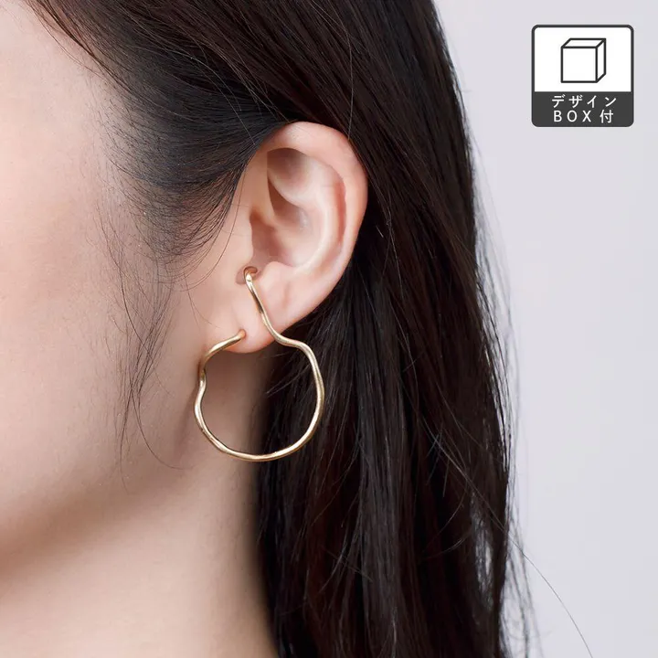 手描きのようなゆらぎが独創的なデザインのピアス。 耳の内側に引っかけるカフが個性的で、身に着けるだけで洗練されたスタイルに。 左耳専用で、片耳ごとに印象を変えたい人、カスタムを楽しみたい人におススメのアイテムです。 ★【新規出品】商品はこちら ★【人気】商品はこちら 【アクセサリー】【贈答品/ギフト】【プレゼント】【ピアス】