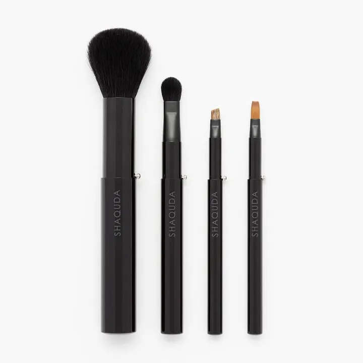 カバ-付きで穂先が収納できる携帯用ブラッシュ4本とブラッシュ専用トライアングルケースをあわせたセット。 コンパクトな設計ながらも、しっかりとした使用感で旅行や持ち歩きにも活躍します。収納ポーチはマグネットがついて簡単に開閉できます。 ギフトとしても最適です。