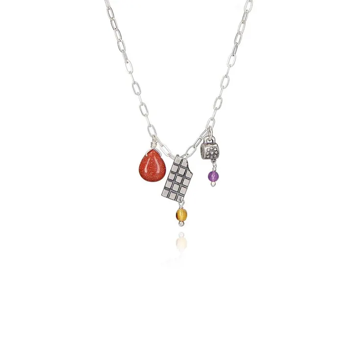 Gargantilla Barray Y Tacita De Chocolate|チョコレートのネックレス(シルバー・サンストーン・天然石)