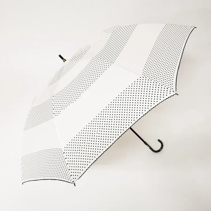 日本政府 推奨商品 傘のお悩み解決!ショートワイド傘 ドットボーダー柄 雨晴兼用傘 1104 オフホワイト