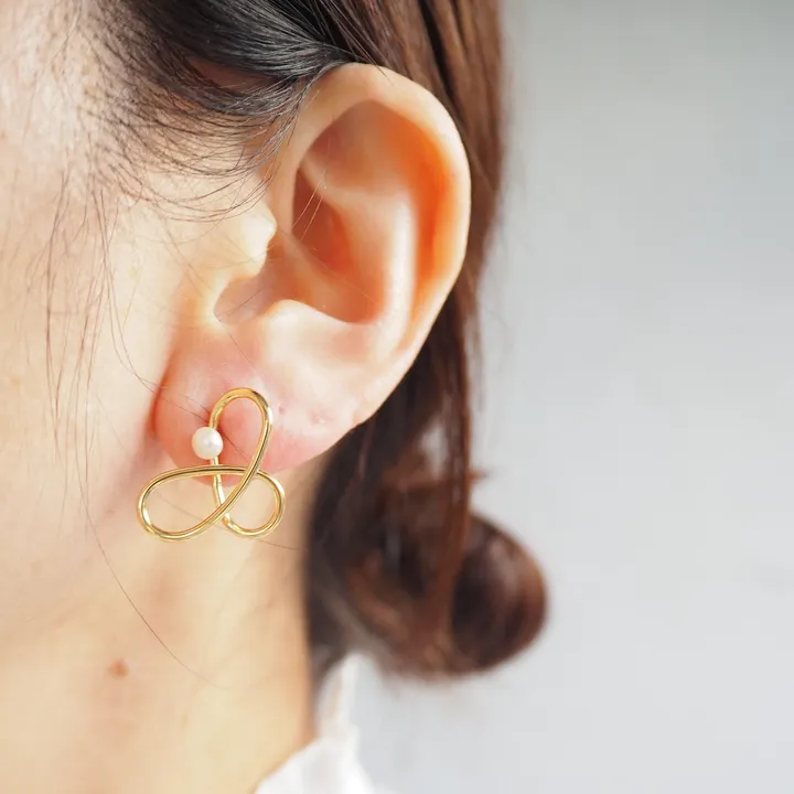 イヤリング【Vintage】線加工フラワーモチーフ+淡水パールピアス 立体的なフォルムが装いをアップデート! パールの瑞々しさをさりげなく込めた 『ゴールド×パール』のイヤリング&ピアス 軽やかな広がりを感じる立体的なフォルムのなかに 小さく美しい淡水パールをそっと一粒 心地よい抜け感と共に表現した お花を連想させるやわらかなフォルムは モダンな雰囲気のなかにかわいらしさもしっかりと感じられます 安心感のあるいつもの『ゴールド×パール』の見え方を アップデートしてくれるアイテムです ◆ POINT ◆ ・線加工で表現した立体的な構造はオリジナルで成形。その線加工のモチーフを原型にして製作した、繊細さと伸びやかさを併せ持つOucaらしさを存分に感じられるデザイン。 ・軽やかに広がるなめらかな曲線はゴールドの艶やかさを際立たせて、柔らかく開く花のような美しさを表現。 ・繊細な線加工が描くフォルムはラフなムードを醸しながらも、小ぶりな淡水パールを一粒添えることで優しく引き締まり、凛とした女性らしい表情に。 ・視線を集める見た目のボリューム感がしっかりとありながらも、着心地は軽くて実用的◎ ●イヤリングタイプ(EN173)もございます。 ◎こちらのピアスには左右があります。 着用画像のように淡水パールが内側にくるように着けていただくと、バランス良く着けていただけます。 商品には専用のBOXが無料で付属しますので、ギフトにも最適です◎