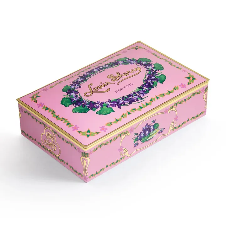 12個入り缶 ストロベリー ロマノフ、マダカスカル バニラ、ポメグラナート メイヤー レモン、ターキッシュ コーヒー、ピスタチオ ディ ブロンテ、シチリアン オレンジ、ココナッツ アーモンド、パッションフルーツ クンカート、シーソルト キャラメル、フロール ド カナーラム、ピエモンテ ヘーゼルナッツ、ブラック ラズベリー ルイスシェリーとは1881年ニューヨークのマディソンアベニューに誕生した伝説のレストラン。 当時レストラン経営、菓子職人、ホテル経営者として活躍したLouis Sherry氏が手掛けたお菓子のブランドです。 以来130年以上、ニューヨークの伝統として世界中で親しまれています。 ルイスシェリーのボンボンチョコレートは「モールド」と呼ばれる型に材料を流し込んで作るモールドチョコレートで、 艶のある造形美が美しく、パリッとした食感が特徴です。 「アンティークジュエリー」の様なブローチや指輪などをイメージしたシェイプが特長で、 “まるでジュエリーのようなチョコレート”とニューヨーカーを魅了し続けています。 缶コレクションの華やかなパッケージはギフトに最適! 創業当時から愛されているクラシックなデザインや気分やイベントなど様々なシーンに合わせて選べる魅力的な色の数々、 そしてルイス・シェリーの世界をさらに楽しくするこだわりのイラストなど… 手にした瞬間からあなたの大切な人や あなた自身の大切な時間を特別なものにしてくれます。