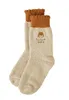 つままれてキョトンとした顔が何ともかわいい「つまんでアニマルズ」。 お店でつまんでたちを購入し家に連れて帰ってくれた家主さんを癒すことが彼らの使命! つまんでたちのイラストをワンポイント刺繍にしたルームソックスは、もこもこの糸で編んでいて肌触りが気持ち良い! ギフトに選びやすいオーガンジーの巾着袋入りです。 ↓インスタアカウント Instagram ID:@tsumande_animals 応援よろしくお願いします!