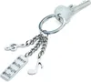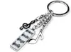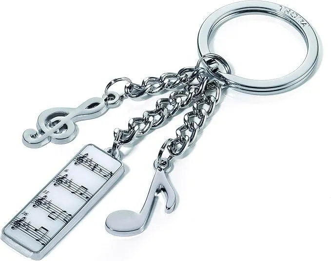 3チャーム付きキーリング、音符、音楽記号、楽譜、鋳造金属、クロムメッキ、シャイニーブラック/ホワイト