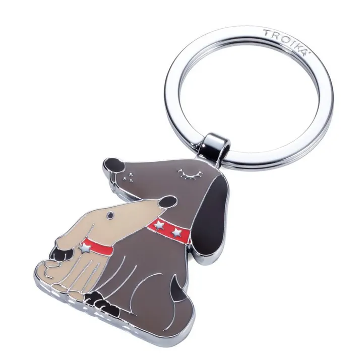 犬好きの方におすすめ!親子犬「ドッグ&ドギー」のキーリングです。 ブラウンのドッグとベージュのドギー。優しい雰囲気あふれる親子です。 かわいい犬の親子に癒されるキーリングは贈り物にもおすすめです。 手に取るたびに心を和ませてくれる、かわいらしさはプレゼントやギフトにもぴったりです。