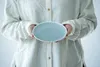ドイツ語で「冠」を意味する“Krone(クローネ)”。 縁がまるでスカラップ刺繍のようにひらひらとしたデザインの器は上質な印象とテーブルにほどよいアクセントを与えてくれます。 おもてなしのシーンにおすすめなシリーズです。 3時のおやつにはお気に入りのお店のスイーツを盛って楽しみましょう。 パン皿、取り皿としても◎ 波佐見焼の磁器で一見洋風な雰囲気ですが、ひらひらの白縁は素焼きになっており釉薬とのコントラストが和食にもよくマッチします。