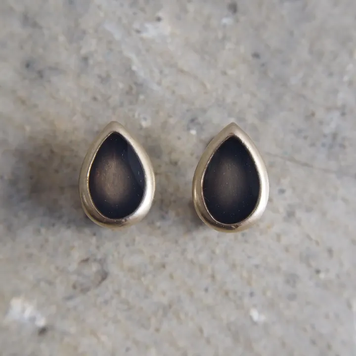 『痛くない』クリップタイプのイヤリング / ブラックエナメルツユ型イヤリング*ピアスタイプあり【Modern】※BOX付き