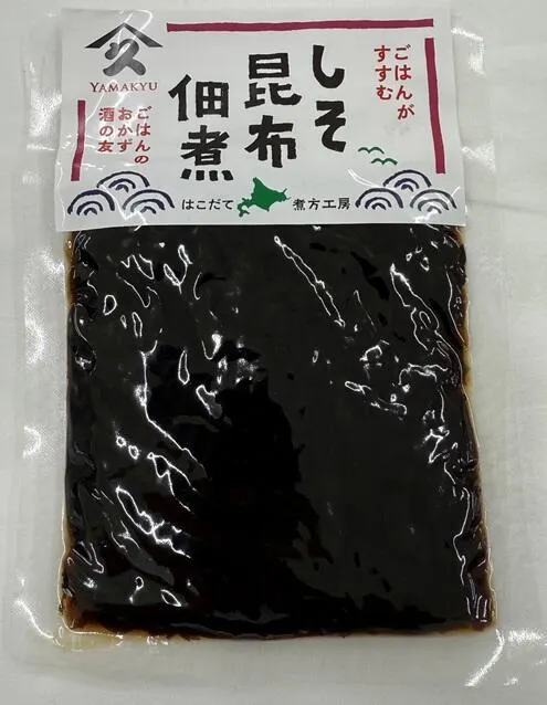 しそと昆布を合わせた定番の佃煮です。 北海道産の昆布は独自の製法でふっくら柔らかく炊き上げました。ご飯の上にのせて食べたり、おにぎりの具材、お酒のおつまみなどとしてお召し上がりください。