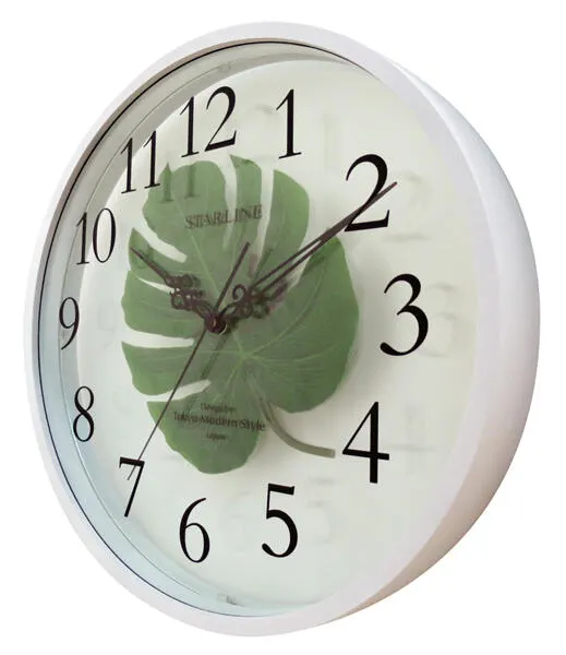 3枚のクリアなモンステラの葉を挟んだ、かわいくておしゃれな壁掛け時計です。 緑鮮やかなモンステラの葉は、爽やかさと同時に豪華な空間を演出します。 どんなインテリアにも調和し、日常を彩るアートピース。時間の経過を優雅に告げるこの時計は、目にするたびに笑顔を運びます。 リビング、寝室などはもちろん子供部屋でも可愛い! またモンステラには「嬉しい便り」「壮大な計画」という花言葉があります。 ハワイでは「希望の光を導く」と言われており、縁起の良いものと言い伝えられています。 母の日、誕生日、開店祝い、記念日など様々なシーンのプレゼントにも最適です。 ぜひこの機会にご利用くださいませ。