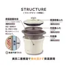 内容器に食材を入れて電子レンジで加熱、内容器ごと保温容器に入れて、蓋をすることで保温調理を行うキッチンツール。