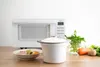 電子レンジ+保温で手軽においしい料理を。 火を使わずに手軽に温かく美味しい料理を実現。しっかり保温ができるので温かい料理がすぐに食べられます。コンパクトサイズで食卓に置きやすい。