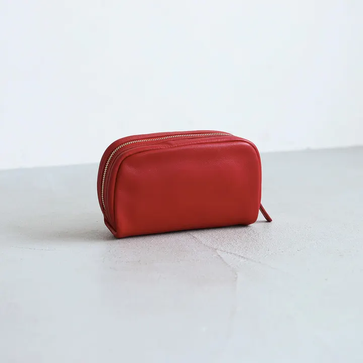 【ガバッと開いて大容量】レザースクエアポーチ 小物入れ 本革 コスメポーチ / Xpee -エクスピー- PB5 バーミリオンレッド