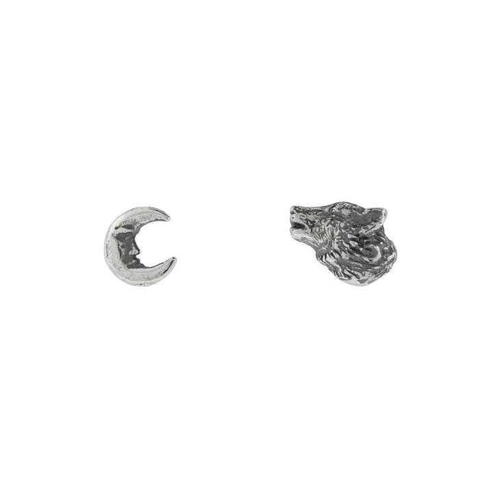 Aretes Lobo y Luna|三日月とオオカミのアシンメトリーピアス(シルバー)