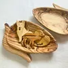 中東パレスチナで剪定木材(オリーブ)からくりぬかれたマグネットです。 表面はニスコーティングされており木肌は艶々。 磁石は小ぶりな見た目に反してしっかりと冷蔵庫などに接着します。 ハート、犬、らくだの3種があります。 マルシェではお子様からご年配の方まで幅広くお手に取っていただいている商品です。 ◆素材の「オリーブ」について 生産地パレスチナでは紀元前からオリーブが栽培されており、樹齢数千年の古木も生えています。5-7年で実を付け始め、30~50年経つと生育を助けるために収穫の後に剪定されます。生産団体では主に50年以上の木の剪定材を使用しています。枝や幹は木材業者へ、あるいは農家から直接工房に渡り、工芸品・日用品に生まれ変わります。小さな材も捨てることなく冬場の燃料に利用されています。 ◆「架け箸」について 架け箸は「素敵に国境はない」をモットーに、フェアトレードで商品開発・セレクト・販売を行うパレスチナ雑貨専門店です。実際にホームステイをして触れた現地の人や文化の魅力を手仕事を通して発信するとともに、木製品の手入れや、天然素材と人の手が掛け合わさった歪さを暮らしに取り入れる楽しみをお伝えしています。 世代、性別を問わず手に取っていただけるような日用雑貨、台所用品、文具などを常時約40種類ほど扱っており(在庫数や原価の関係で、goooods未掲載のお品もございます)、対面販売や、自社EC、卸でのお取り扱いのほか、これまでに阪急阪神百貨店や名鉄百貨店、松屋銀座での催事にも出店しています。 ◆本商品の生産団体「Holy Land Handicraft Cooperatives Society」について 中東で一番古い世界フェアトレード連盟(WFTO)加盟団体。パレスチナ(ベツレヘム・西岸地区)で2000人の地域のコミュニティを支えており、コロナ禍を乗り越え、現在も町の柱である観光収入が全く入らない中、海外との取引を続け離職者を出さないよう職人をサポートしています。