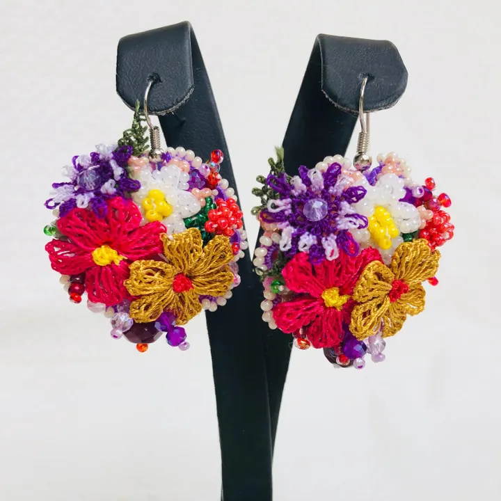 トルコoya刺繍ピアス ミニブーケを貴女に 伝統工芸品 一点もの 1118