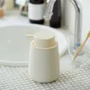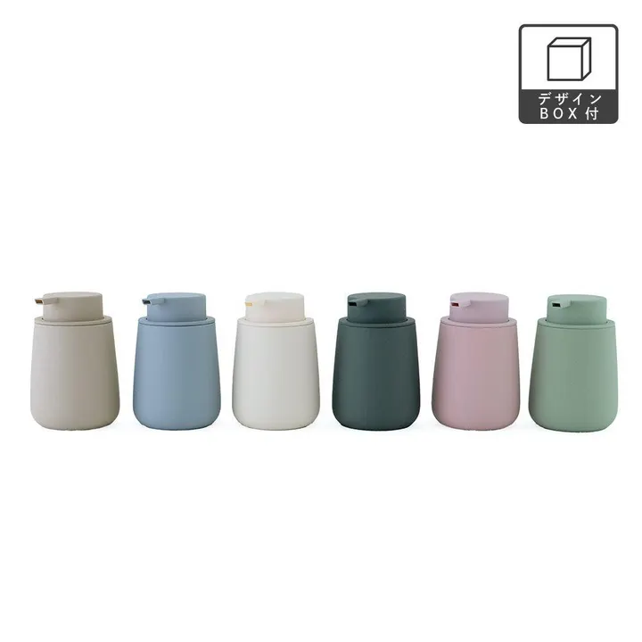 陶器にラバーコーティングが施され、マットな質感が上品なディスペンサー。インテリアに馴染みやすいベーシックカラー展開です。 キャップの面積が広く、詰め替えがしやすくなっており、プッシュしやすいのでお子様も使いやすいデザインです。 素材の情報 陶器にラバーコーティングを施すことでクッション性が向上し、表面を保護してくれます。これによって衝撃や振動に強くなり、割れや欠けを防ぐことができます。また、手に持った質感や心地よさ、マットな見た目が特徴です。