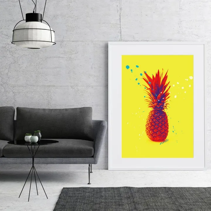 アーティスト -PROFILE- MOMOCO(モモコ) 「色」をこよなく愛する画家、ライブペインター。 躍動感あるアートにも関わらず、服を一切汚さず短時間で音楽と同時に描き上げる。そのパフォーマンスと巨大アートは観る人を魅了する。 前職は某有名ファッションブランドにてデザイナーとして活躍。その経験の中で養われた「色とデザイン」の絶妙なバランスを活かしつつ、トレンドを取り入れ進化し続けるアートを目指す!国内外問わず、精力的にアートと向き合い発信を続けている。 【作品について】 赤色のパイナップルをモチーフに目の冴えた黄色の背景がおしゃれなアート 白、青ペインティングもアクセントに シンプルなデザインなのでどんなインテリアにも相性よし! 作品名:イエローパイン 手法:デジタル、イラスト ペーパー:高品質半光沢紙 マットカラー:白 マット*:DXホワイト芯 100%バージンパルプ/PH7・中性紙(2mm厚) ※全てのアートにマットがつきます フレームカラー:黒、白、無垢(3種類から選択) ※マット付のため通常とはフレームサイズが異なる規格となります。 【マット*とは?】 アートポスターの周りに挟んだ厚紙の事。 マットを使わない時に比べ余白により広がりが生まれ、作品の新たな一面を引き出せ作品の見栄えがグッと良くなります。また、額縁のガラス面と作品が直接触れたままにしておくと、くっついて作品を傷つけることがあります。マットを使用することでガラスと作品の間に空間ができ、作品を保護することができます。ブランドコンセプトにより全てのアートにマットがつきます。 ー ファッションのようにアートを ー 私達が掲げるコンセプトです! 毎日着替えるファッションの様に、アートも気軽に飾り変えて欲しい... 一旦飾り終えたアートにも光を当ててほしい... ポスター単体、またはリピートで中身だけのポスターを購入された方に"専用のハンガー"をセットでお届け。 「今までに無い!新しいアートの飾り方を提案」 飾る事がなくなった前のアートをハンガーにかけて洋服と一緒にかけてもらう。 その日の気分や、モチベーションですぐに取り換えられる様に。 もちろん、魅せる収納としても今までにないおすすめの飾り方です。