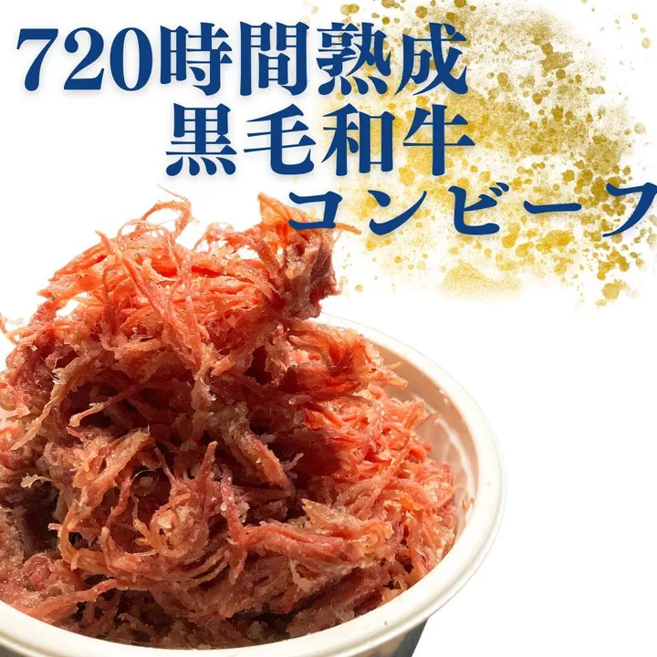 黒毛和牛のおいしさを凝縮させ、食感にこだわり、丁寧に手ほぐしした「720時間熟成黒毛和牛コンビーフ」。 良質な黒毛和牛を伝統の製法で720時間熟成。 2日間じっくり煮込んだ牛肉を、熱々のうちにほぐししながら余分な脂や筋を丁寧に取り除きました。 赤身肉の食感を大切に、時間も手間も惜しまず、手ほぐしにこだわります。 赤身肉の濃厚なうまみを生かすため、味付けも控えめです。 おいしさも食感も、いままでのコンビーフとはひと味もふた味も違う、極上のコンビーフをどうぞたっぷりと味わってください。