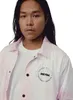 伝統的なコーチジャケットスタイルですが、絞り染めで仕上げているため一点一点表情が異なります。 ブランドロゴの入ったオリジナルのスナップボタンやリブ袖など細部にもこだわった一品。 フロントとバックのロゴもポイント。 ホワイトとピンクのタイダイ染は男性でも女性でも着こなせます。